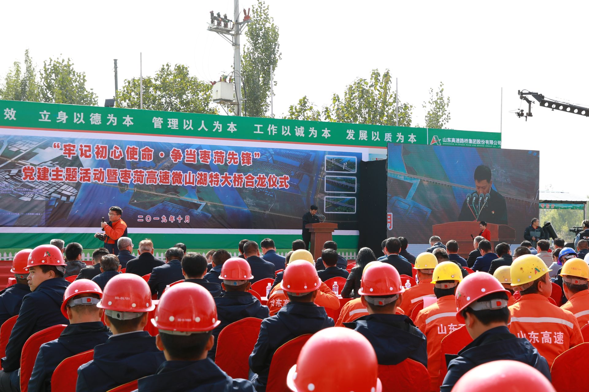 10月26日,“牢記初心使命 爭當(dāng)棗菏先鋒”黨建主題活動(dòng)暨棗菏高速微山湖特大橋合龍儀式隆重舉行,標(biāo)志著由路橋股份承建的跨越中國北方最大的淡水湖橋梁---棗菏高速微山湖特大橋順利合龍,為棗菏高速明年全線通車奠定了堅(jiān)實(shí)基礎(chǔ)。