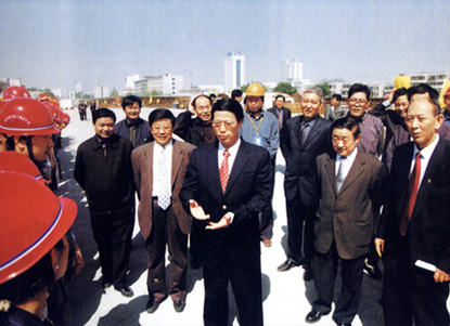 原中共中央總書記、國家主席、中央軍委主席胡錦濤2005年10月視察南京長江三橋建設(shè)并親切接見集團公司干部職工。